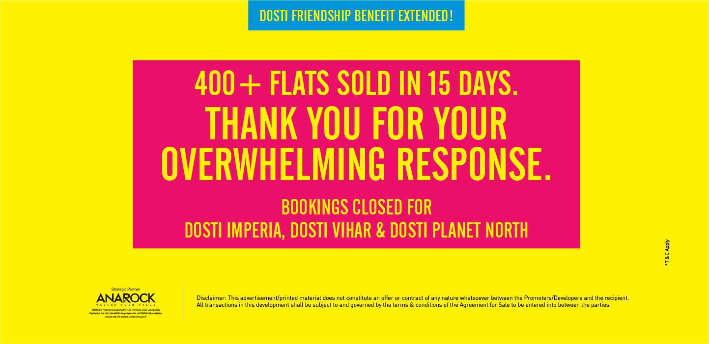 Site Address: Dosti Vihar, Near Vedant Complex, Pokharan Road No.1, Thane (W) - 400 606.
